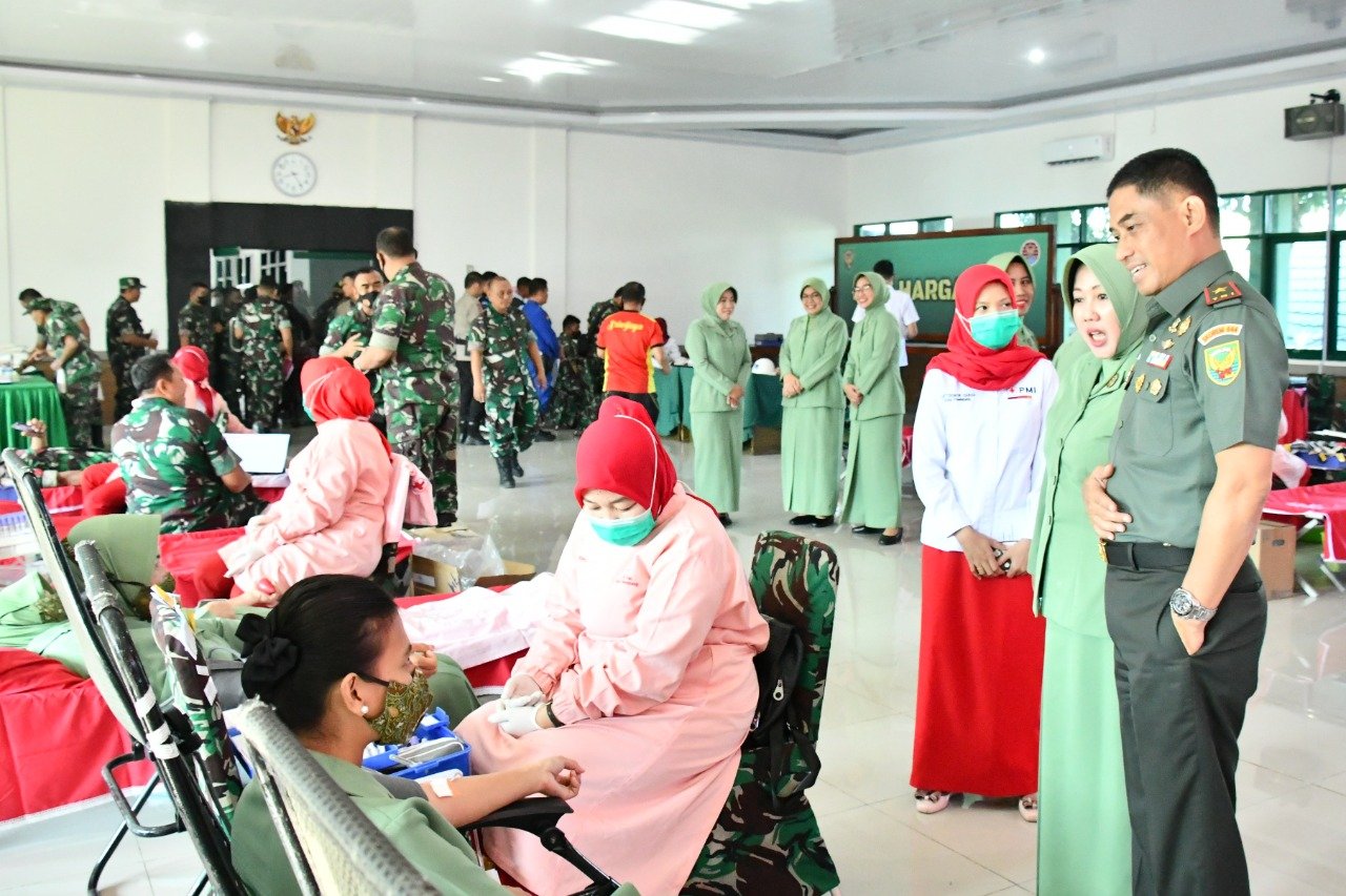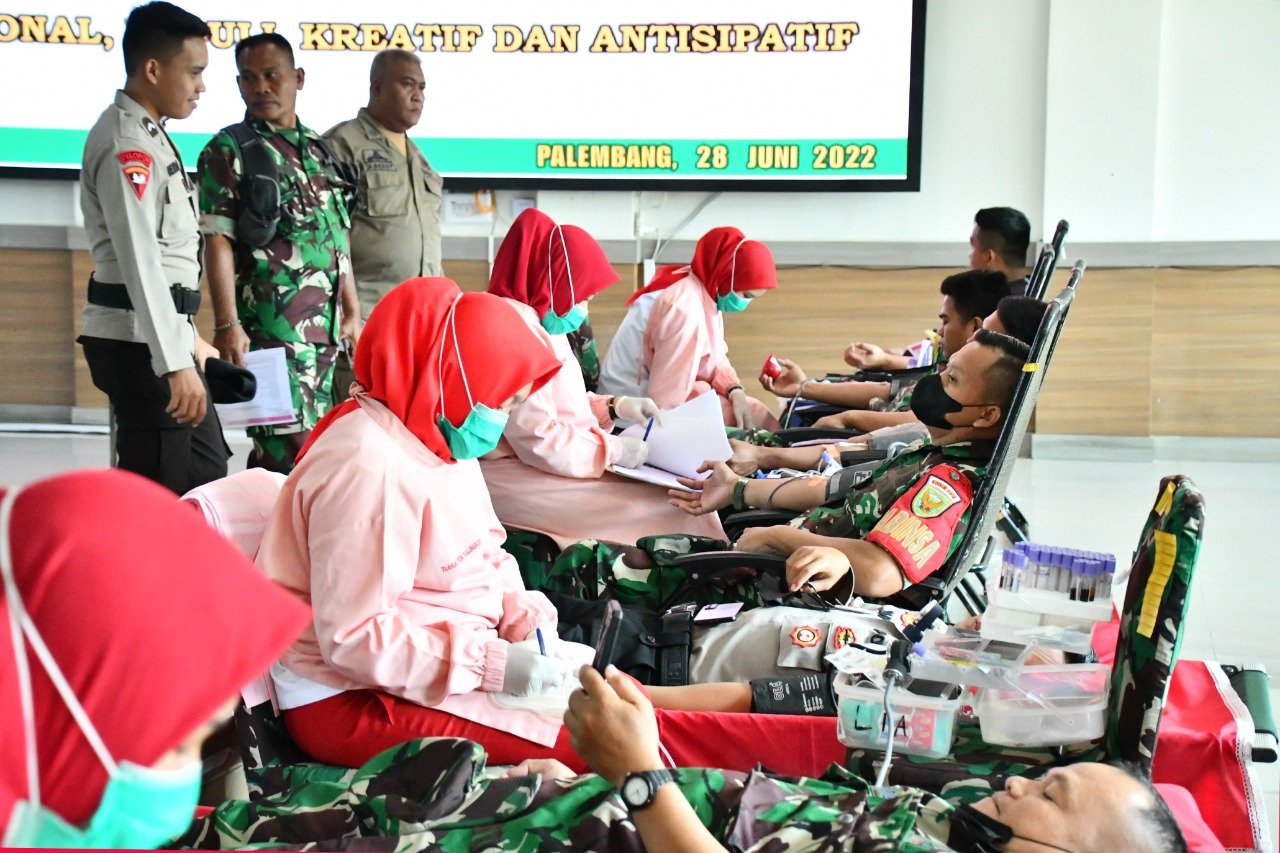 Kegiatan donor darah dikoordinatori Dandenkesyah 02.04.04 Palembang, Letkol Ckm dr. I Nyoman Indrawan,Sp.PD., FINASIM yang berkerjasama dengan Palang Merah Indonesia (PMI) Provinsi Palembang dibuka langsung Danrem 044/Gapo Brigjen TNI M Naudi Nurdika, S.I.P., M.Si., M.Tr (Han).