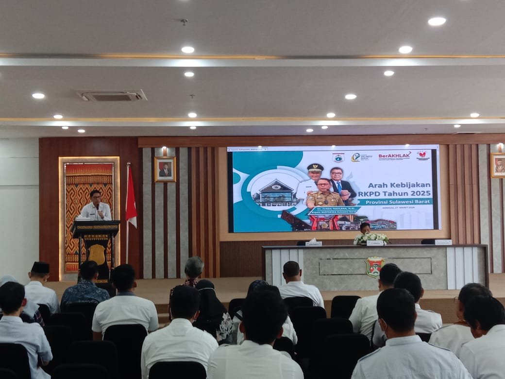 Dalam sambutanya, Kepala Bapperida Sulbar, Junda Maulana yang diwakili oleh Sekretaris Bapperida, Muh. Darwis Damir memaparkan arah kebijakan RKPD Tahun 2025 Pemerintah Provinsi ( Pemprov) Sulbar.
