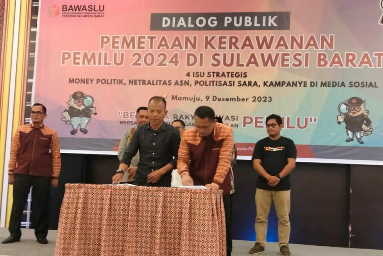 MATTANEWS.CO,SULBAR– Badan Pengawas Pemilihan Umum ( Bawaslu ) Provinsi Sulawesi Barat ( Sulbar ) menggelar Dialog publik pemetaan kerawanan pemilu 2024 di Sulawesi Barat.