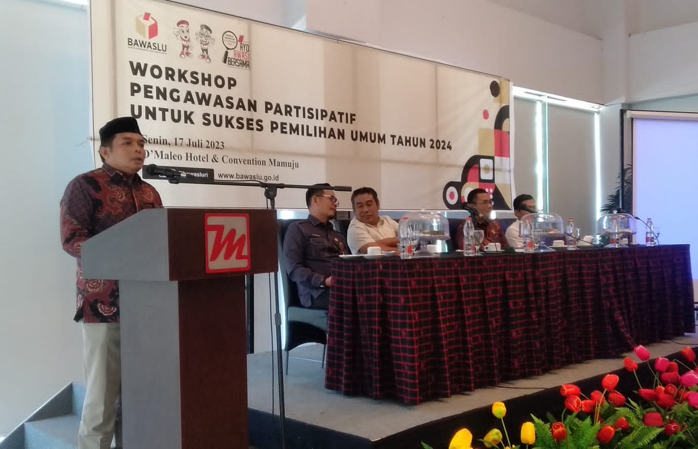 MATTANEWS.CO,SULBAR – Bawaslu Provinsi Sulbar, menggelar Workshop pengawasan partisipatif untuk mensukseskan Pemilu tahun 2024. Agenda itu dilaksanakan di D’Maleo Hotel Mamuju, Senin, (17/07/2023).
