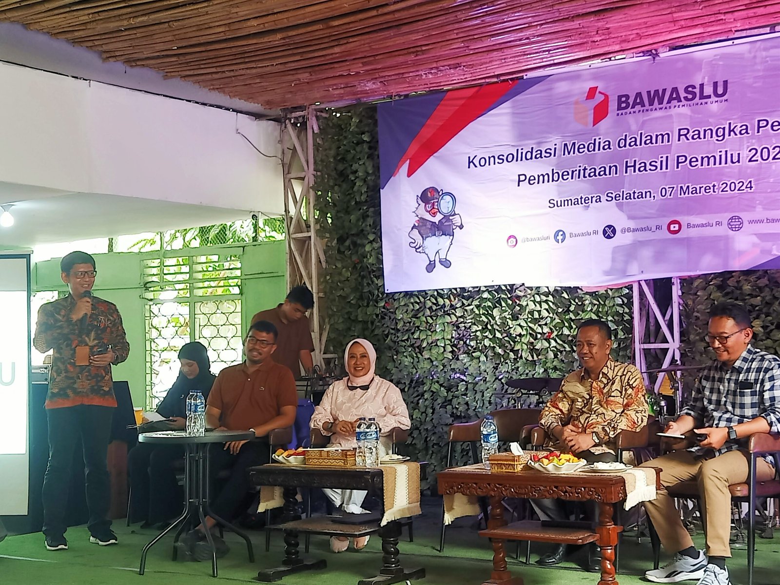 MATTANEWS.CO, PALEMBANG – Badan Pengawasan Pemilihan Umum (Bawaslu) Provinsi Sumatra Selatan mengelar konsolidasi media, dalam rangka penguatan pemberitaan hasil Pemilu 2024, di Gun’s Cafe, Jalan Tasik Palembang, Sumsel, Kamis (7/3/2024).