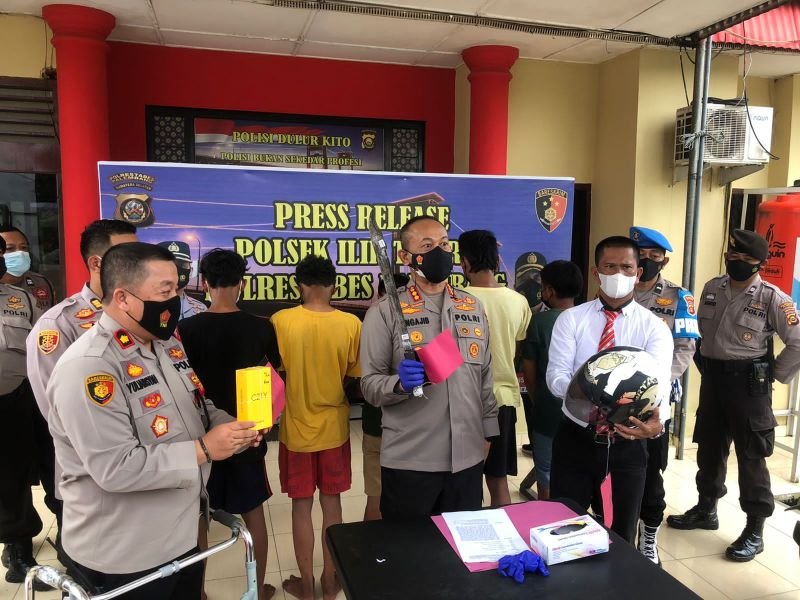 MATTANEWS.CO, PALEMBANG – Berdalih tidak ada uang untuk jajan, lima ABG (Anak Baru Gede) nekal begal Ojol (Ojek Online), Nasir (43), saat melintas di Jalan AKBP Cik Agus, dekat SPBU Golf Kelurahan Duku Kecamatan Ilir Timur III pada Minggu (20/02/2022) lalu, pukul 03.00 WIB. Akibatnya, AL (16), AJ (14) FJ (15) AD (15) dan AR (15) harus hidup di bui sel tahanan Polsek Ilir Timur II Palembang, Senin (7/3/2022).
