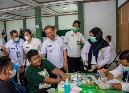 MATTANEWS.CO, KUALA KAPUAS – Pemeriksaan Kesehatan tahap II (kedua) dan Vaksinasi Meningitis Meningokokus calon Jemaah Haji Kapuas mendapat perhatian khusus dari orang nomor satu di Kapuas, meskipun ditengah kesibukannya dia rela meluangkan waktunya guna melihat secara langsung proses pemeriksaan kesehatan bagi para calon jamaah haji Kapuas yang berlangsung di Aula Islamic Center Masjid Agung Al Mukkaram, Rabu (15/03/2023) pagi.