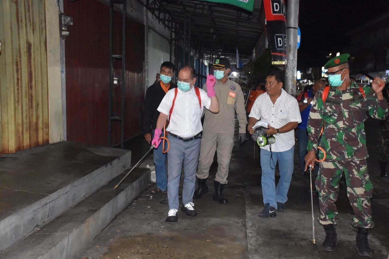 Seusai rapat dilanjutkan dengan penyemprotan Disinfektan oleh Bupati Kapuas Ben Brahim S Bahat dan Wakil Bupati Kapuas H.M Nafiah Ibnor serta Tim SatGas Pencegahan Covid-19 disekitaran Pasar Sanjaya Kuala Kapuas demi mematikan virus – virus yang ada di udara dan yang menempel pada dinding dan aspal jalanan.