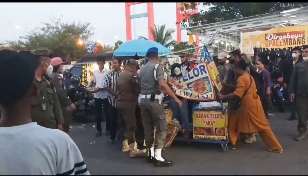 Bentrok yang melibatkan Sat Pol PP Kota Palembang dengan pedagang ini sempat terdengar letusan senjata api, berasal dari anggota Pol PP.