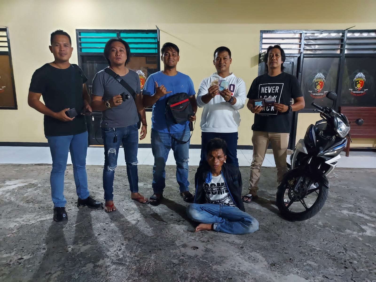 Sepeda motor tersangka juga diamankan polisi sebagai barang bukti.