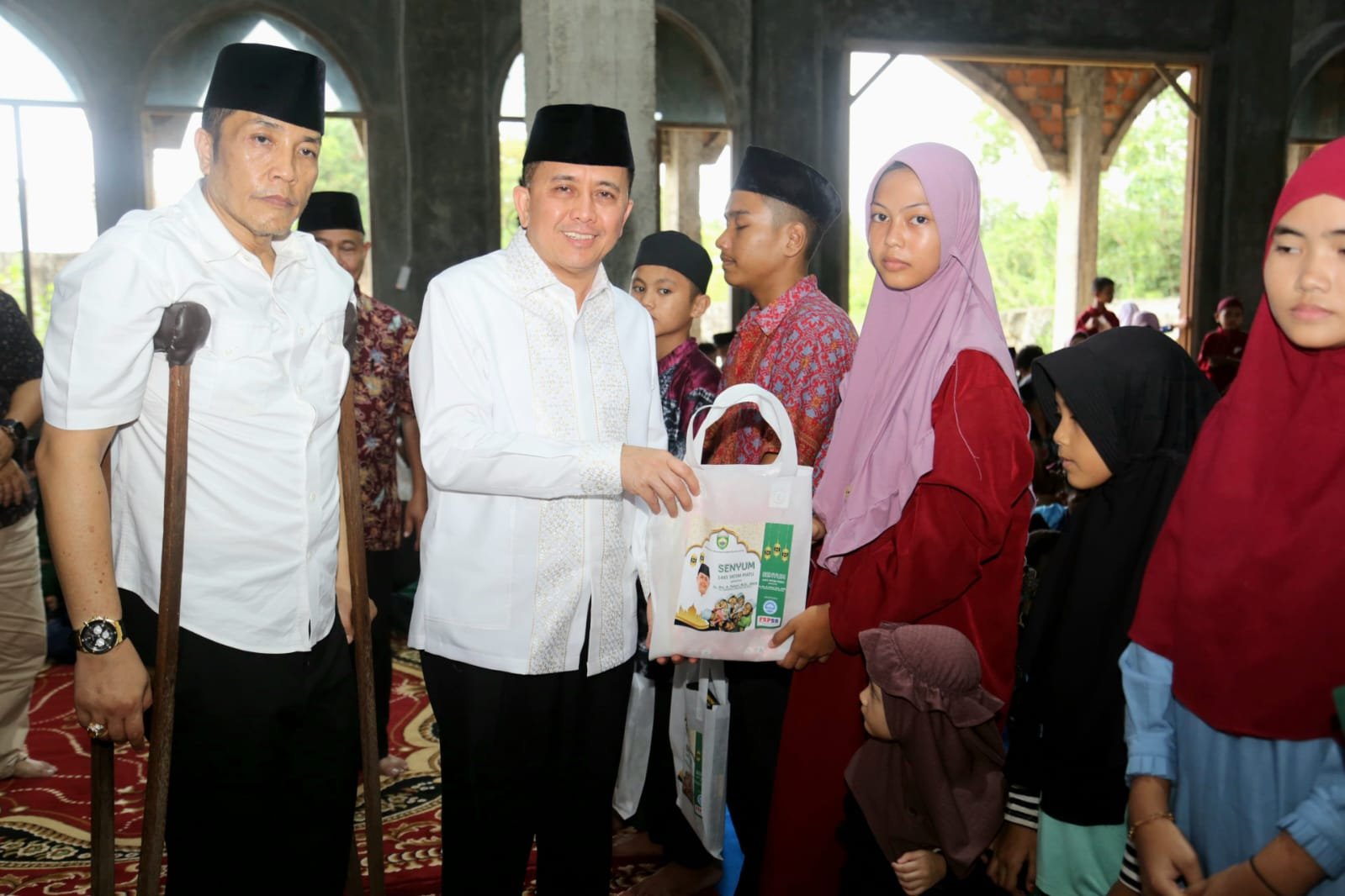 Sebagai bentuk perhatiannya pada anak yatim menjelang lebaran atau hari Raya Idul Fitri 1445 Hijriah, Fatoni memberikan santunan berupa uang tunai dan perlengkapan shalat berupa mukenah serta sarung.