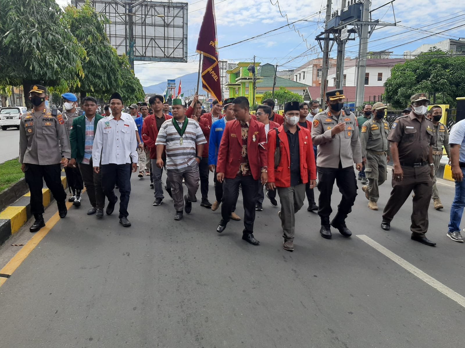 MATTANEWS.CO, PADANGSIDIMPUAN – Dengan berjalan kaki mulai Alaman Bolak, Kapolres Padangsidimpuan, AKBP Dwi Prasetyo Wibowo, SIK, dan Kapolres Tapanuli Selatan (Tapsel), AKBP Imam Zamroni, kompak beriringan mengawal aksi damai dari mahasiswa Cipayung Plus, Selasa (6/9/2022) siang.