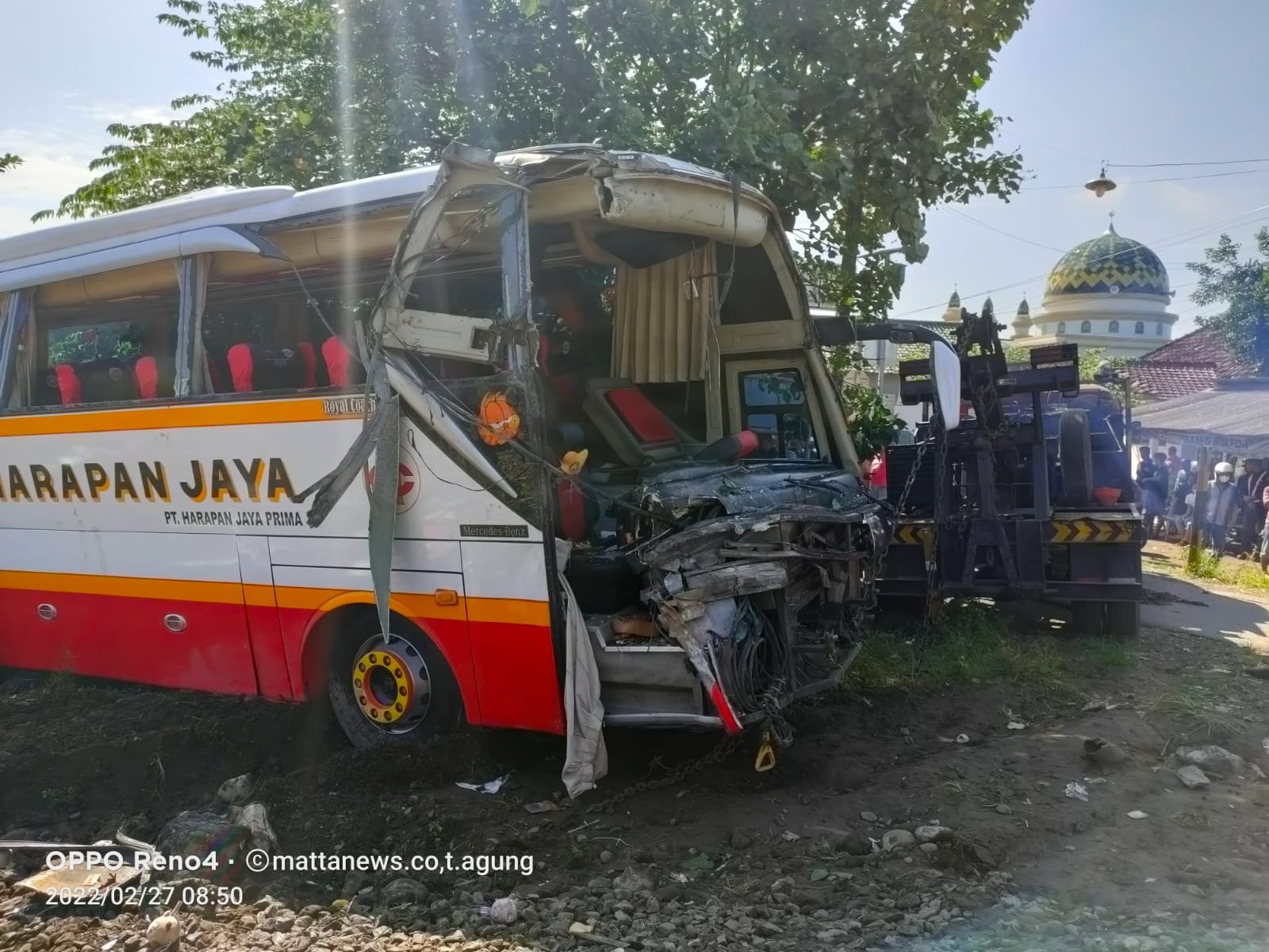 MATTANEWS.CO,TULUNGAGUNG – Pasca kejadian maut tabrakan kereta api Rapih Dhoho jurusan Blitar menuju Surabaya menabrak Bus Pariwisata Harapan Jaya di perlintasan tanpa palang pintu di Desa Ketanon Kecamatan Kedungwaru, Kabupaten Tulungagung, oleh petugas langsung dievakuasi ke Rumah Sakit Umum Daerah dr. Iskak setempat.