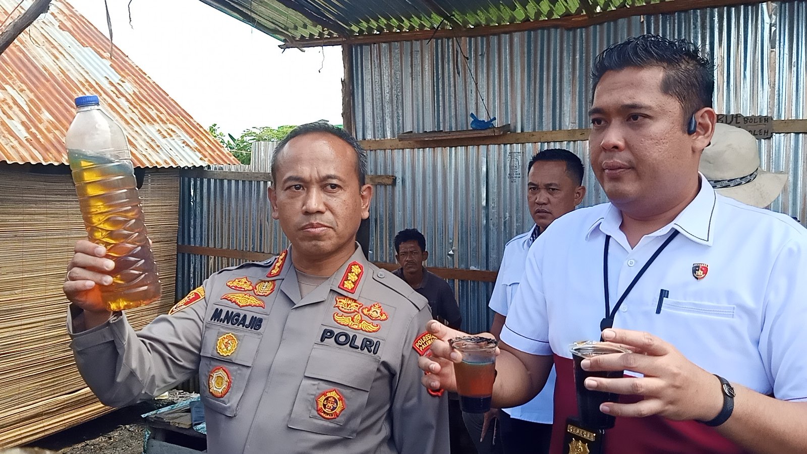 Dari lokasi kejadian, petugas turut mengamankan empat pelaku, JC (33), HR (33), HL (33) dan SL (33). Selain itu, anggota juga menyita satu ton minyak solar kotor, selang, pompa, drum dan mobil truk tangki Transportir Berlambang PT Heva Petrolium Energi No Pol BG 8796 DD berisi solar oplosan.