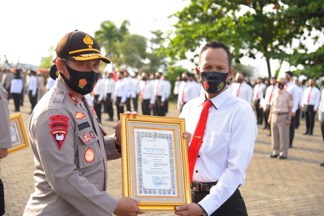 Penghargaan sendiri diberikan Wakapolda Lampung Brigjen Pol Drs Sudarsono, dihadapan jajarannya pada Senin (14/09/2020) pagi.