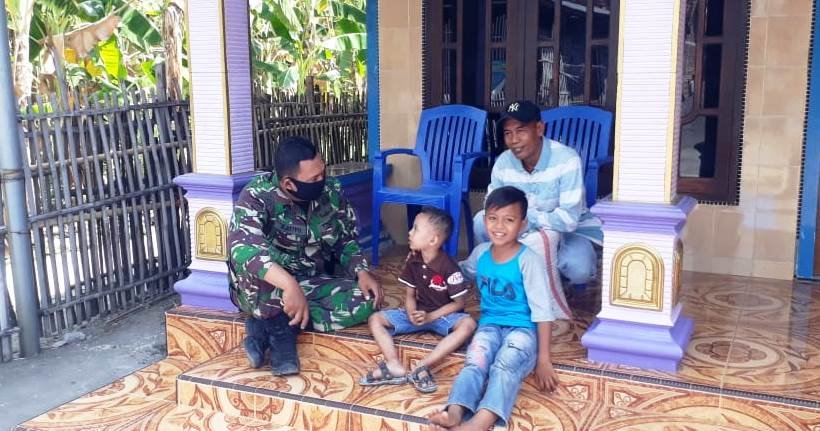Mereka asik ngobrol di depan rumah tidak jauh dari lokasi sasaran fisik TMMD untuk melepas lelah dengan cara canda tawa bersama anak anak tersebut.