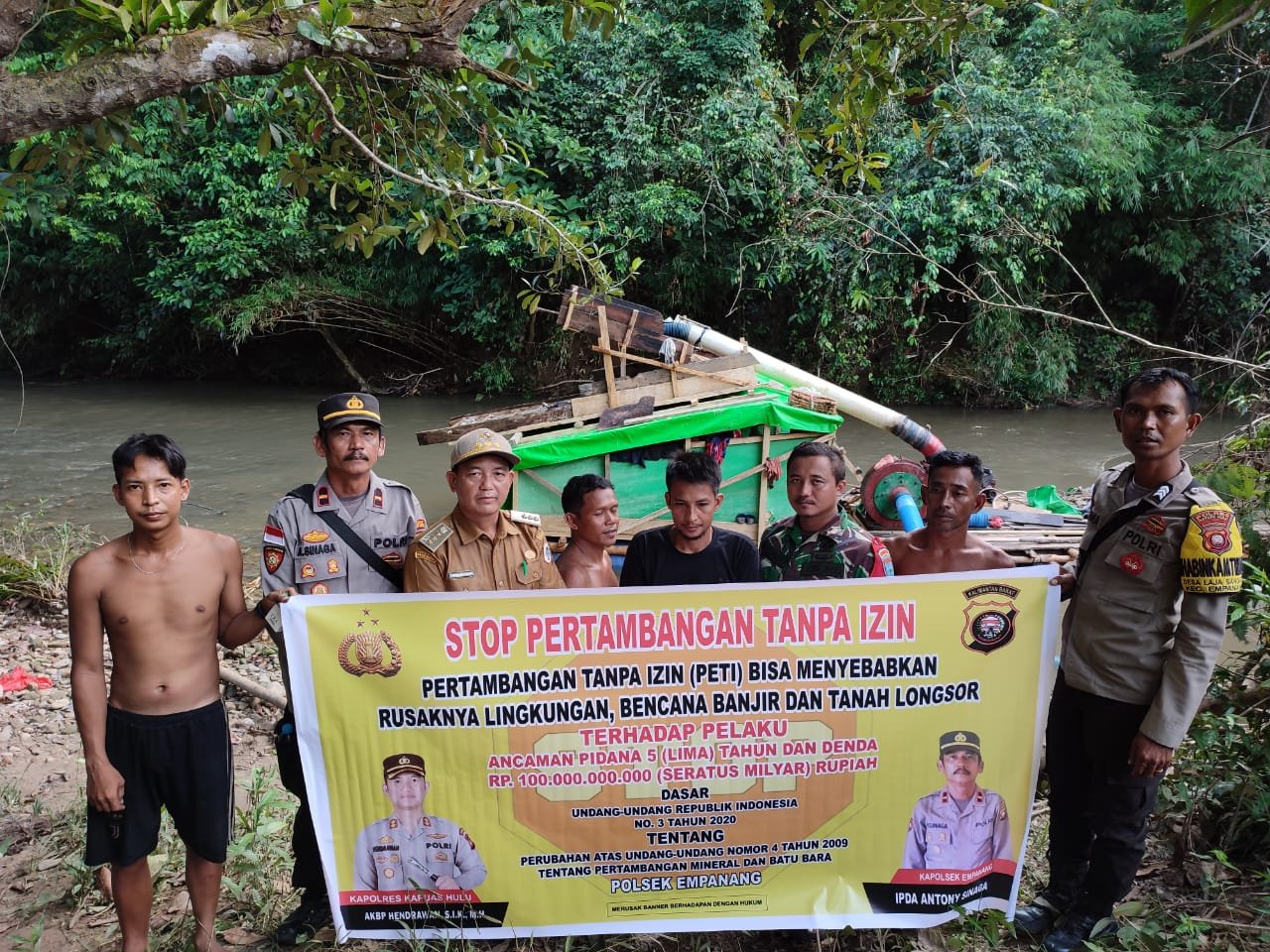 Kapolsek Empanang IPDA Antony Sinaga memberikan himbauan kepada para pekerja PETI agar segera menghentikan kegiatan penambangan ilegal.