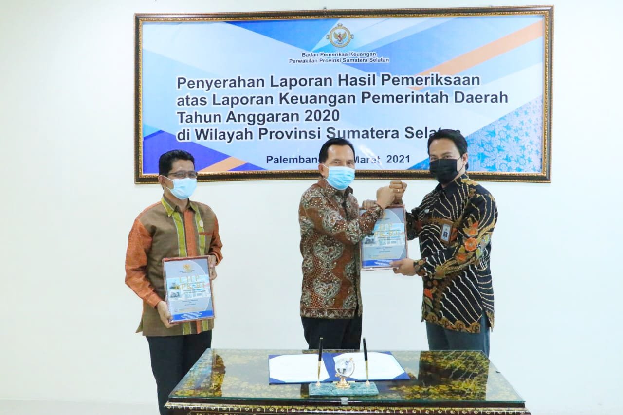 Penyerahan Laporan Hasil Pemeriksaan (LHP) yang berlangsung hampir satu bulan itu disampaikan oleh, Kepala BPK RI Perwakilan Sumsel, Harry Purwaka CSFA diwakili Kepala Sub. Auditorat Sumsel II Teguh Prasetyo, kepada Wako Prabumulih di Gedung Perwakilan BPK RI Sumatera Selatan di Jalan Demang Lebar Daun Kota Palembang, Senin (8/3/2021).