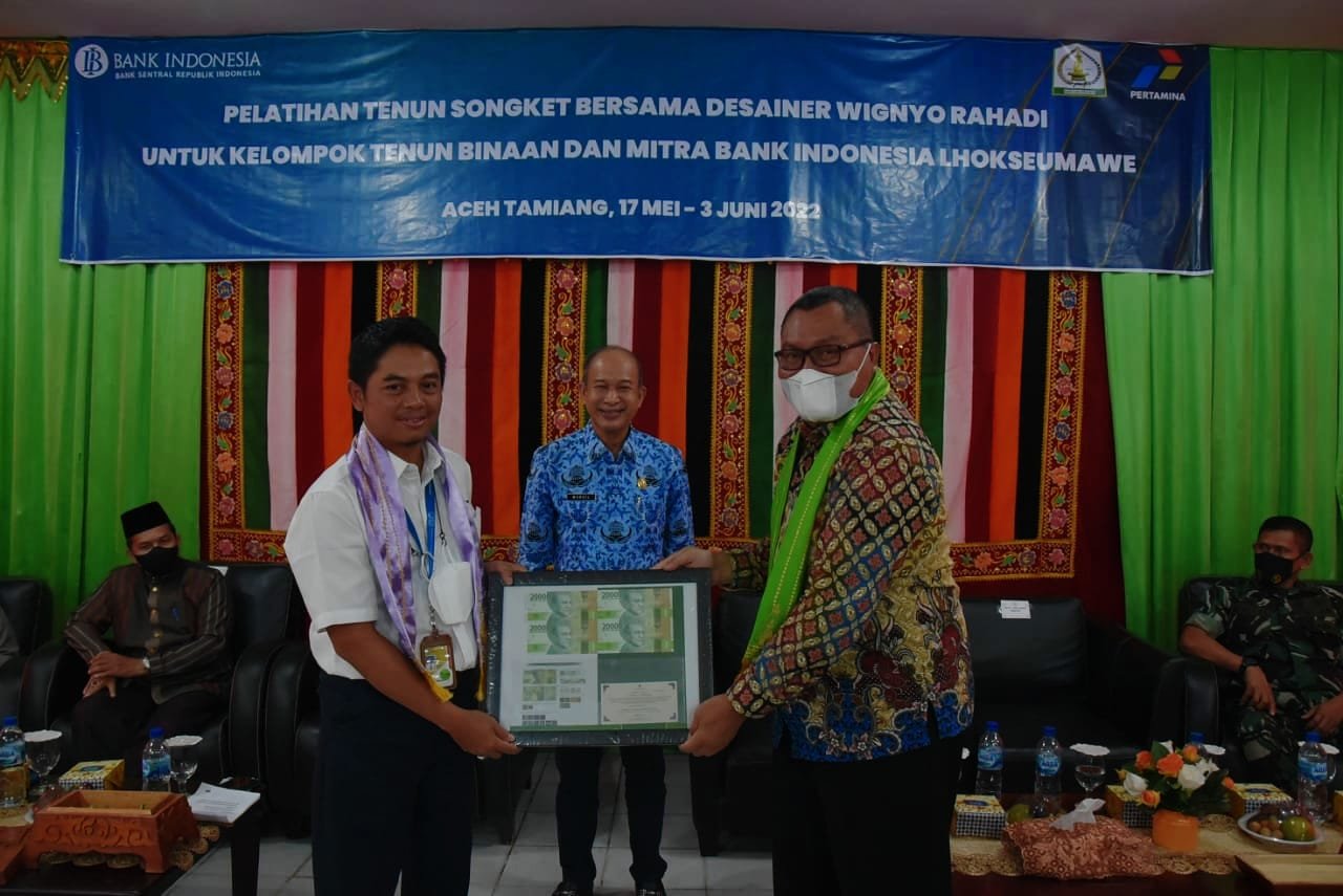 Dalam pelatihan itu, BI Cabang Lhokseumawe menghadirkan Desainer Wignyo Rahadi ini, pelatihan tenun songket menjadi bukti dukungan BI Lhokseumawe dalam mendorong pengembangan usaha mikro, kecil dan menengah industri kreatif kain tenun songket Aceh.