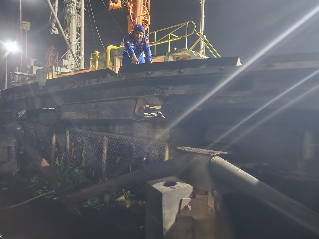 MATTANEWS.CO, PALEMBANG – Lantaran ‘Black Out’ Kapal SPOB Bahari Maju II dan Kapal MT Palusipat bertabrakan, di perairan Sei Goreng Pertamina, tepatnya di Dermaga 8 Pertamina Plaju, Palembang, Minggu (28/01/2024).