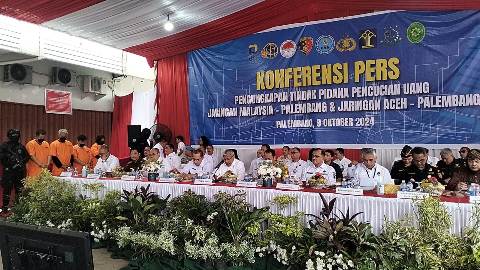 MATTANEWS.CO, PALEMBANG – BNN-RI berhasil menyita aset, bergerak maupun tidak bergerak, dari empat tangan bandar besar, jaringan jaringan Malaysia – Palembang dan Aceh – Palembang, total sekitar Rp 6,4 Miliar. Hal ini terungkap saat press release di depan ruko milik tersangka Ali Tjikhan alias Wehan, Jalan Baypas Alang Alang Lebar, Palembang, Rabu (9/10/2024).