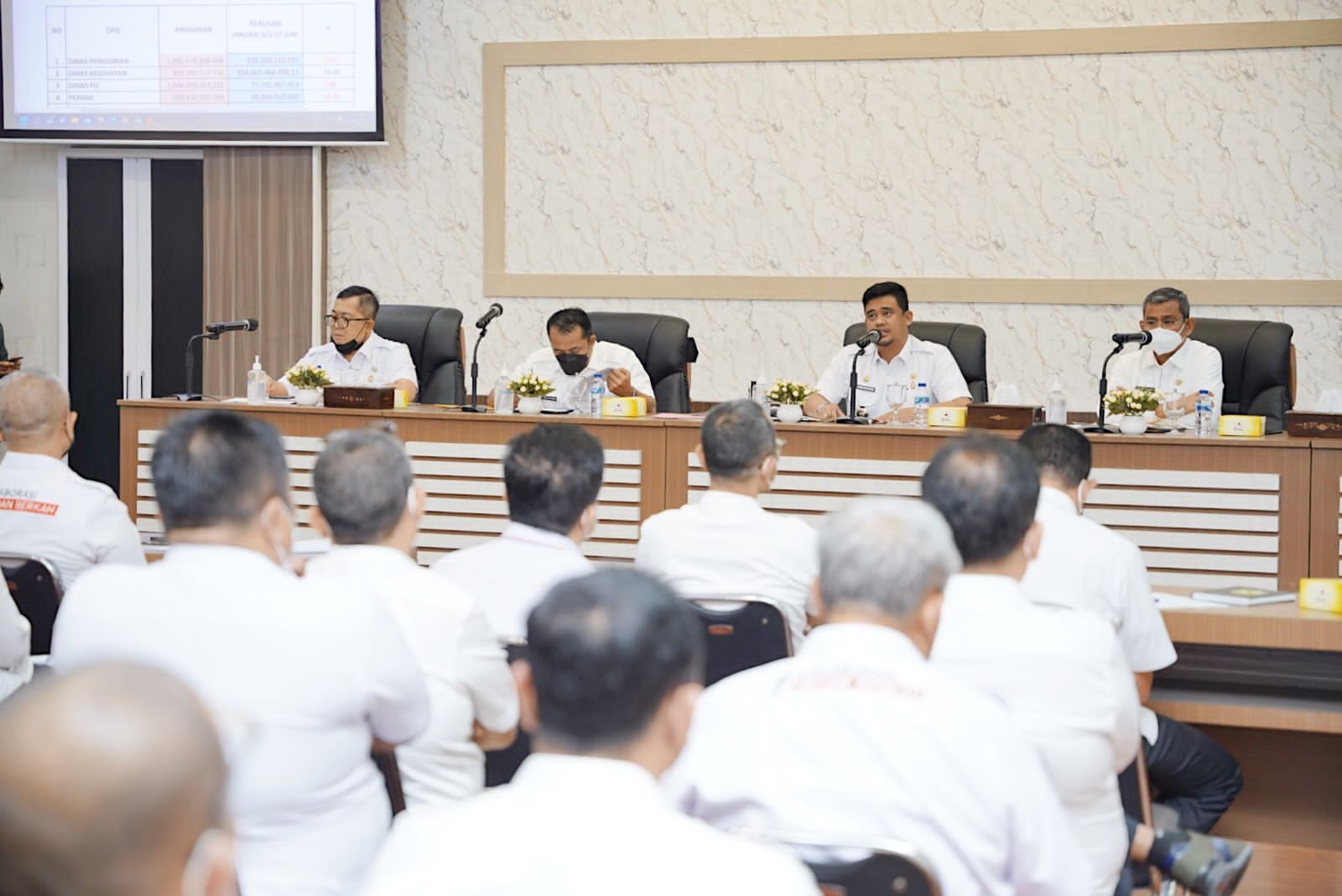 Didampingi Wakil Wali Kota Medan Aulia Rachman, Sekda Kota Medan Wiriya Alrahman, Asisten Administrasi Umum Renward Parapat dan Kepala Bappeda Benny Iskandar, Bobby selanjutnya menyampaikan, penyerapan atau realisasi anggaran dari masing-masing OPD sangat penting dilakukan agar dapat memenuhi target yang telah ditetapkan.