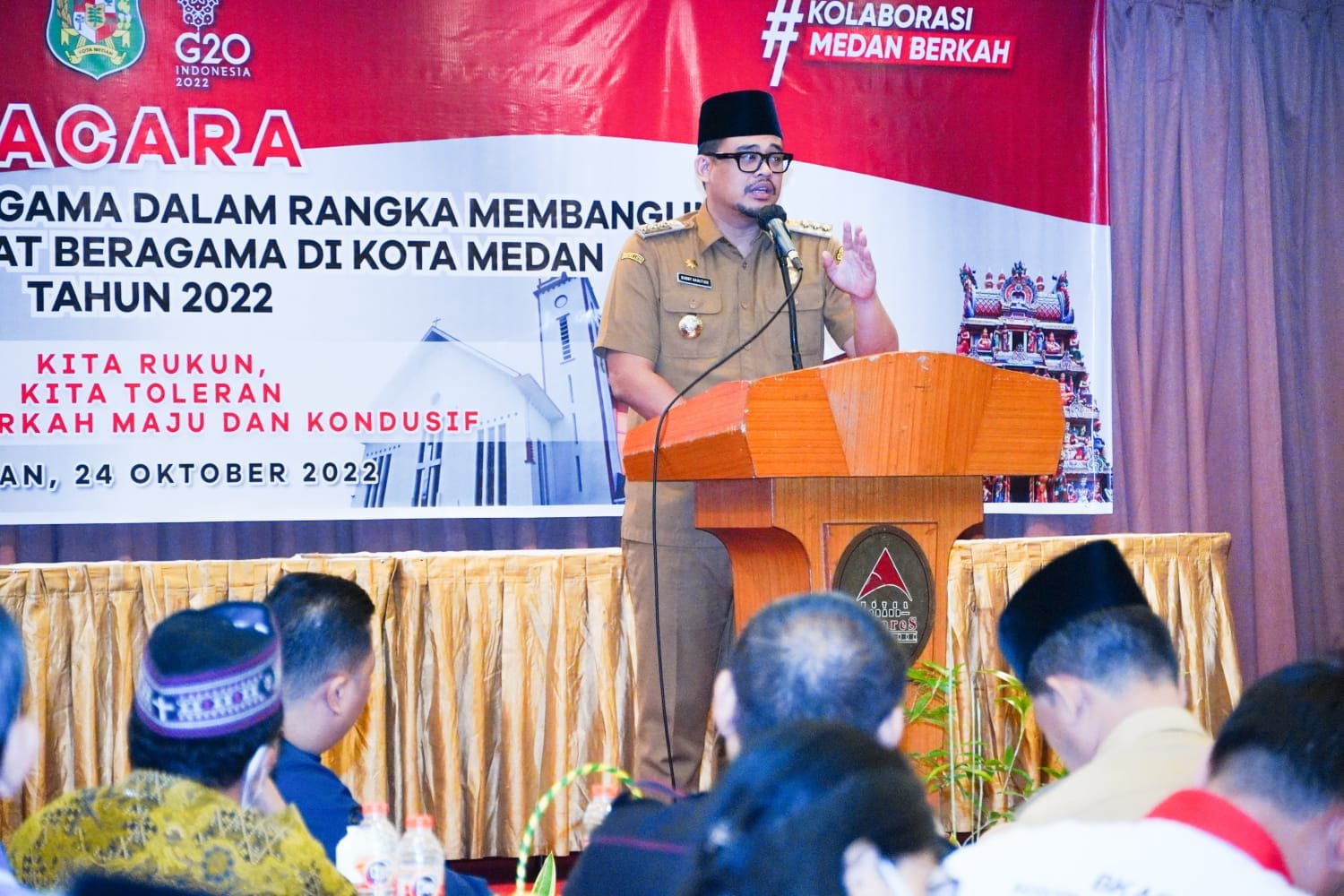 MATTANEWS.CO, MEDAN – Wali Kota Medan Bobby Nasution mengajak seluruh tokoh dan organisasi agama yang ada di Kota Medan untuk berkolaborasi bersama Pemko Medan dengan senantiasa menjaga kerukunan antar umat beragama.