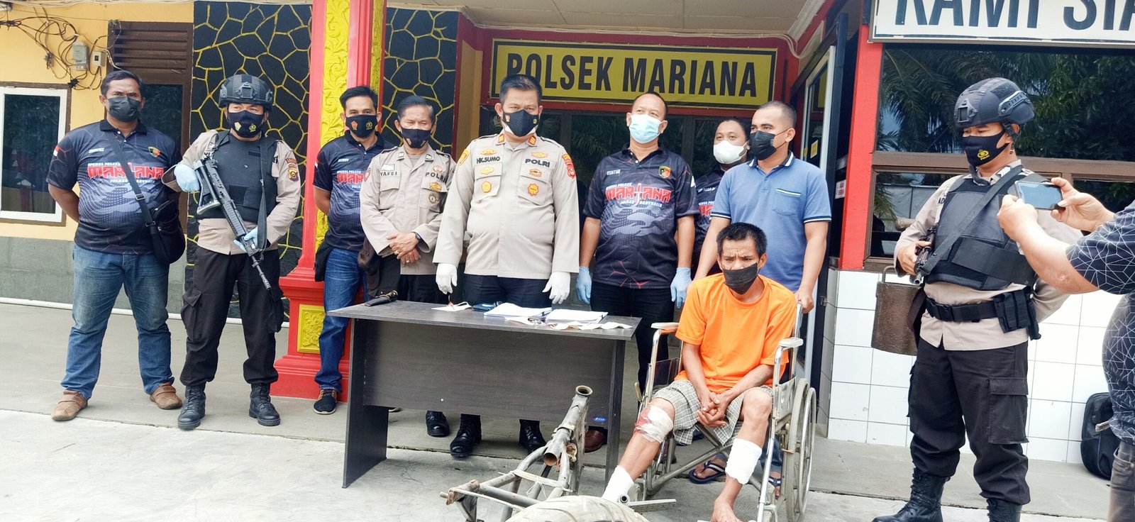 “Tersangka ditangkap di kawasan Pasar 16 Ilir, Kecamatan IT I Palembang, Rabu (18/9/2021) sore. Dikarenakan melakukan perlawanan, terpaksa kita lumpuhkan dengan butiran timah panas, karena melawan saat ditangkap,” ungkap Kapolsek Mariana, AKP Halim Kesumo, saat press release.