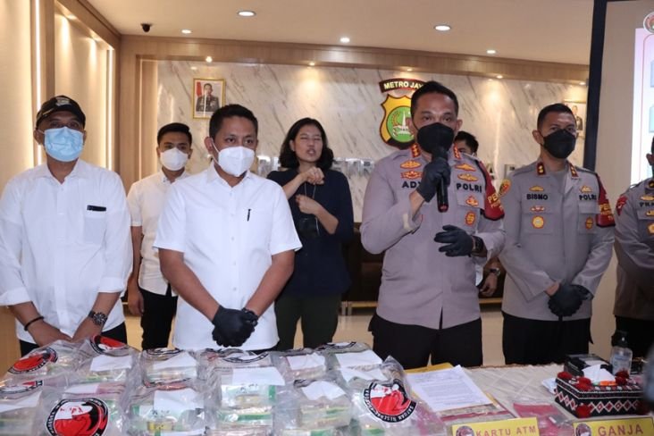 Kapolres Metro Jakarta Barat Kombes Pol Ady Wibowo didampingi Kasatres Narkoba Polres Metro Jakarta Barat Akbp Danang Setiyo menerangkan pihaknya berhasil membongkar sindikat narkoba jaringan internasional Malaysia-Aceh-Jakarta