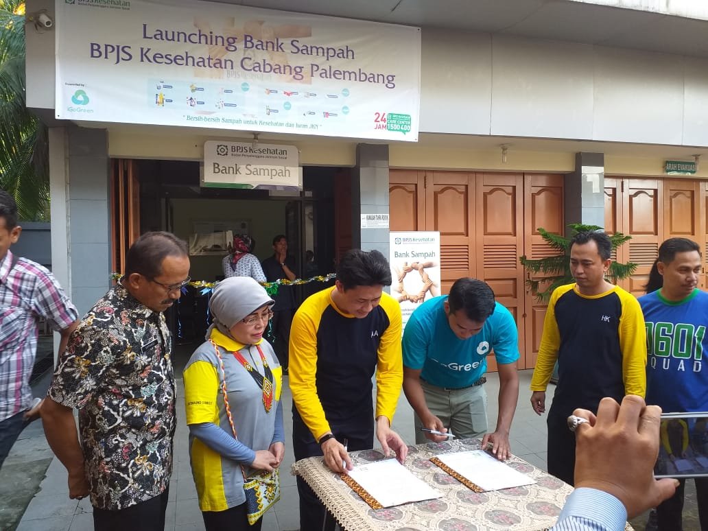 PALEMBANG, Mattanews.co – Badan Penyelenggara Jaminan Sosial (BPJS) Kesehatan Cabang Palembang Jumat (03/05/2019) meresmikan bank sampah. Peresmian yang dilakukan Kepala BPJS Kesehatan Cabang Palembang, Andi Ashar dan Kepala Dinas Kesehatan Letizia, yang dihadiri karyawan IGoGreen, pegawai dan pihak-pihak yang terlibat dalam bank sampah BPJS Kesehatan Cabang Palembang.