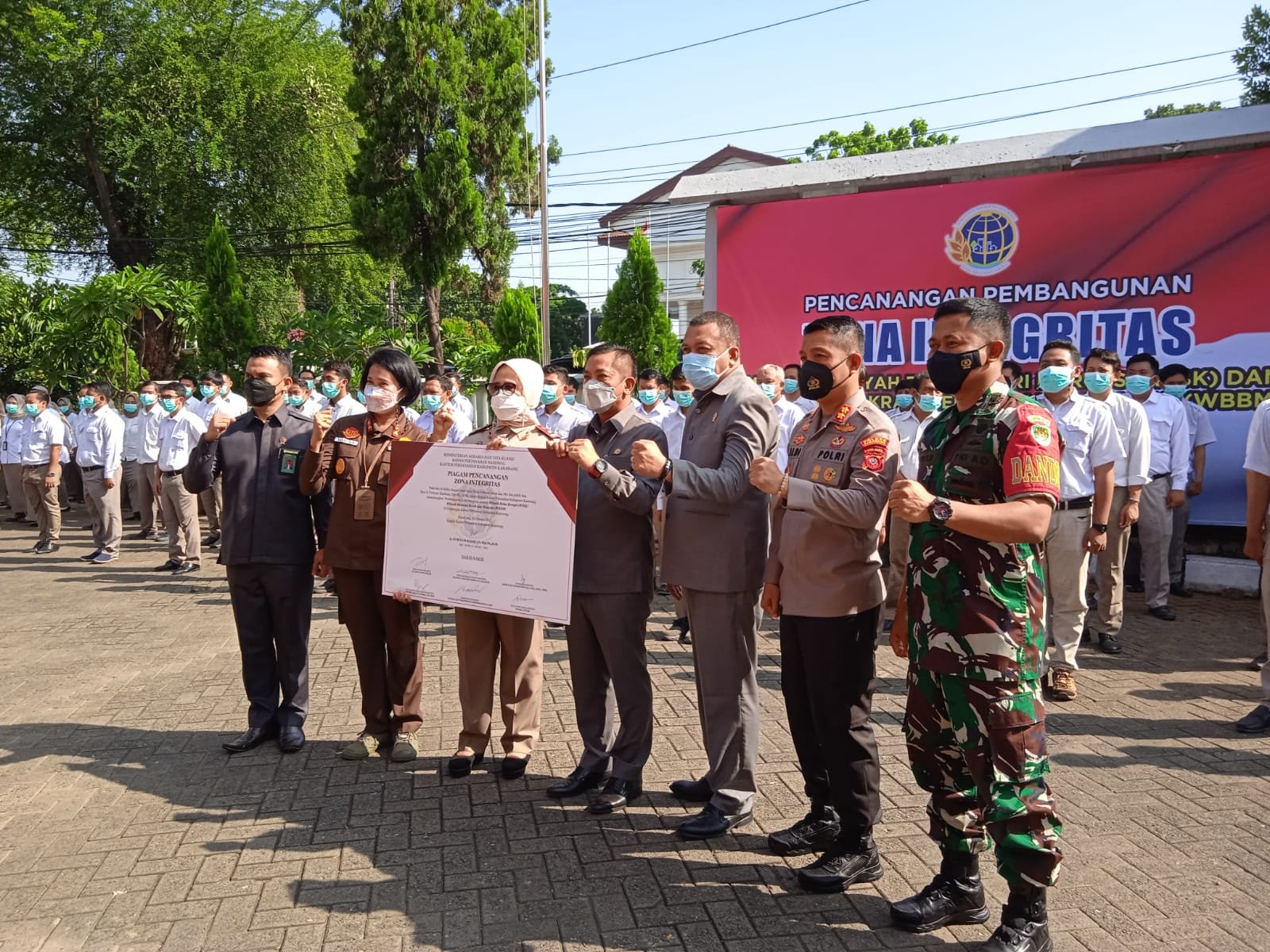 MATTANEWS.CO, KARAWANG – Kantor Badan Pertanahan Nasional (BPN) Kabupaten Karawang melaksanakan deklarasi eksternal pembangunan Zona Integritas menuju Wilayah Bebas dari Korupsi (WBK) dan Wilayah Birokrasi Bersih serta Melayani (WBBM) yang berlangsung di halaman kantor BPN Karawang, Rabu (16/2/2022).