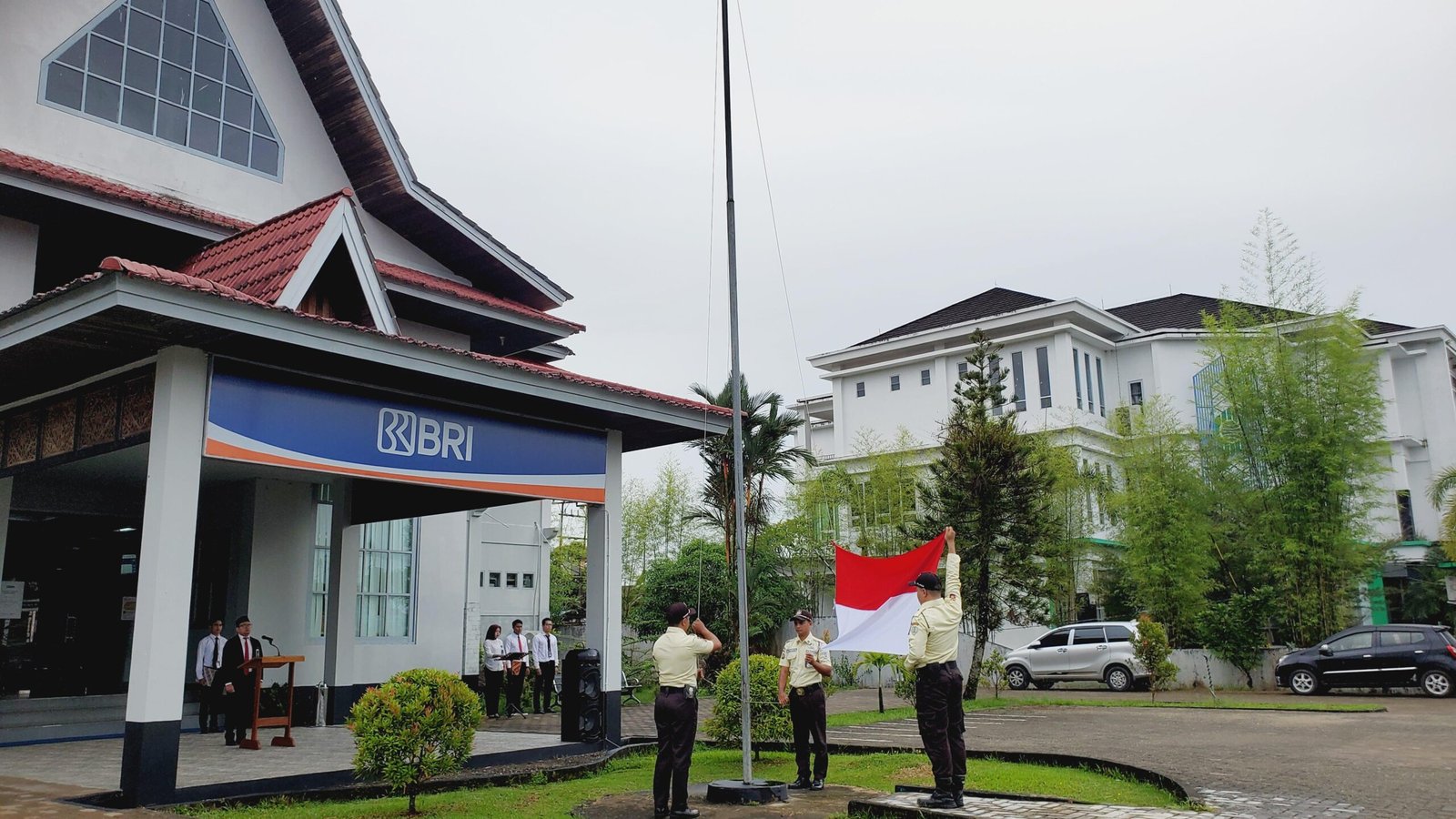 Upacara ini diikuti oleh seluruh jajaran pegawai BRI Putussibau, yang tampak mengenakan seragam rapi dan penuh semangat nasionalisme.