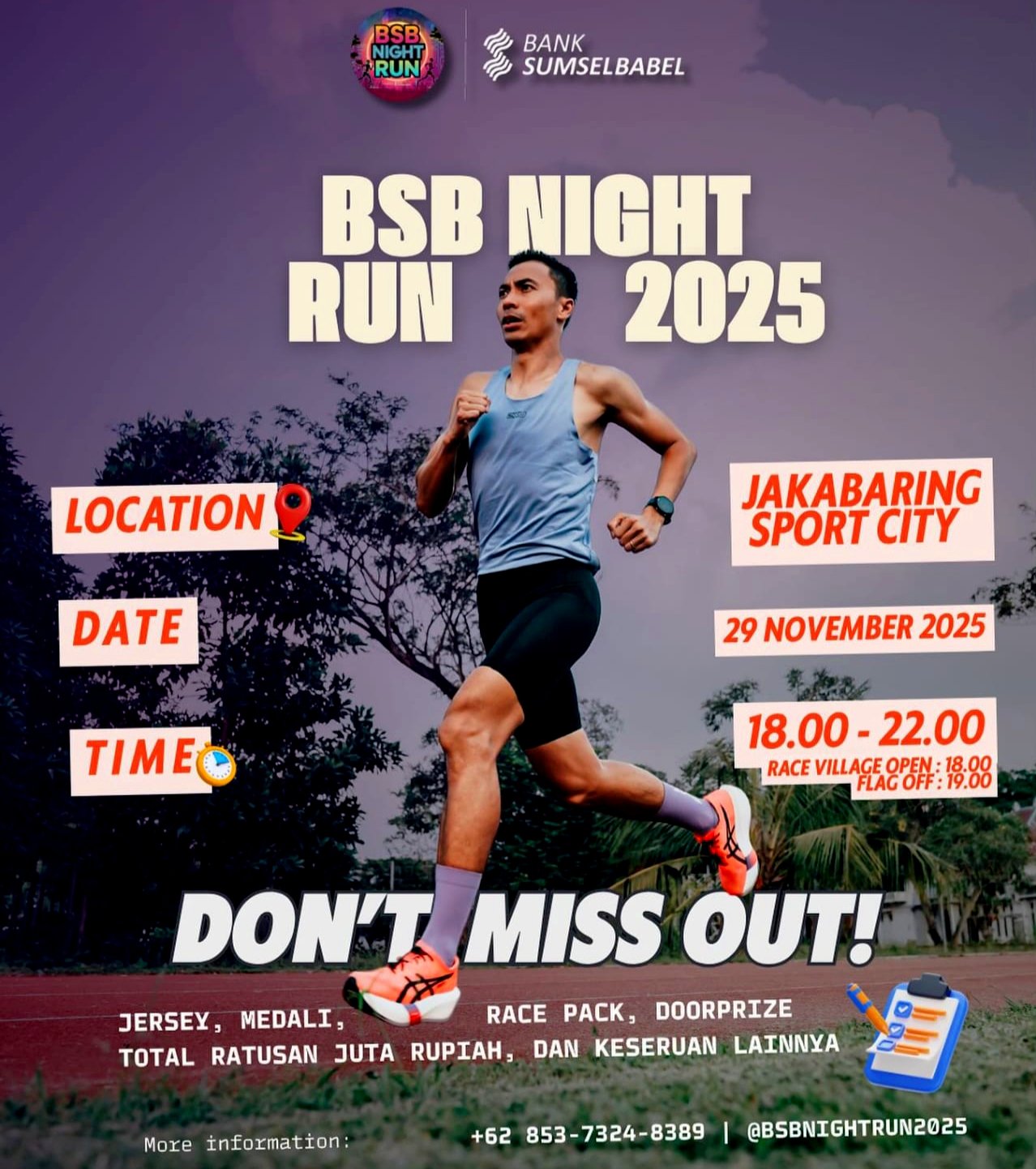 Semakin mendekati waktu pelaksanaan, media sosial dibanjiri antusiasme peserta yang memamerkan race pack, foto jersey, hingga latihan terakhir jelang lomba menjadi bukti kuat bahwa BSB Night Run kini telah menjelma sebagai agenda tahunan prestisius dalam kalender olahraga Sumatera Selatan.