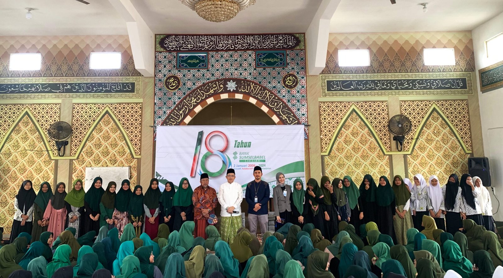 “Alhamdullilah, kunjungan kami disambut baik pemilik pesantren, Ustadz Hendra Zainudin dan sekitar 500 santri,” ungkap Pemimpin Bank Sumsel Babel Cabang Syariah Palembang Tian Kedaumpu Yamin yang mewakili Direksi Operasional & Syariah Bank Sumsel Babel, saat diwawancarai wartawan online media Mattanews.co.