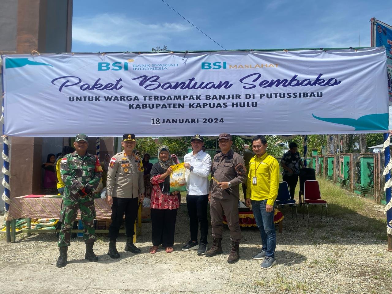 MATTANEWS.CO, KAPUAS HULU – Banjir baru-baru ini di Kapuas Hulu menimbulkan kerugian signifikan. BSI Maslahat, bersama PT Bank Syariah Indonesia Tbk (BSI), dari Kantor Cabang Pembantu (KCP) Putussibau, memberikan bantuan kepada warga terdampak banjir di Putussibau, Kabupaten Kapuas Hulu, Kalimantan Barat, pada Kamis (18/1).