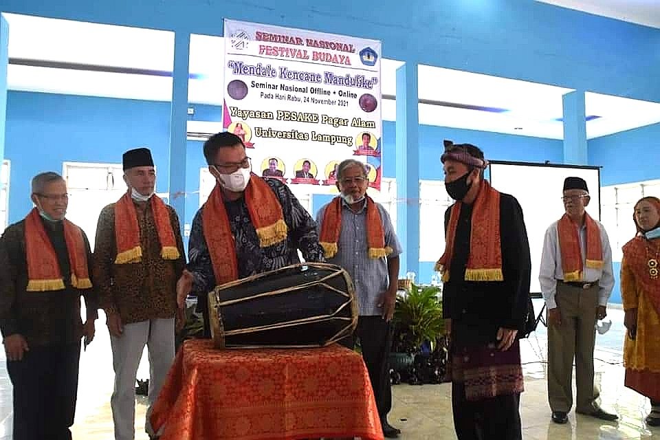 MATTANEWS.CO, PAGAR ALAM – Wali Kota (Wako) Pagar Alam Alpian Maskoni menghadiri serta membuka Seminar Nasional Festival Budaya dengan tema “Mendale Kencane Mandulike” yang diselenggarakan oleh Yayasan Lembaga Kebudayaan Pesake Pagar Alam, di Aula SD Negeri 74 Gunung Gare, Kota Pagar Alam, Kemis (25/11/2021).
