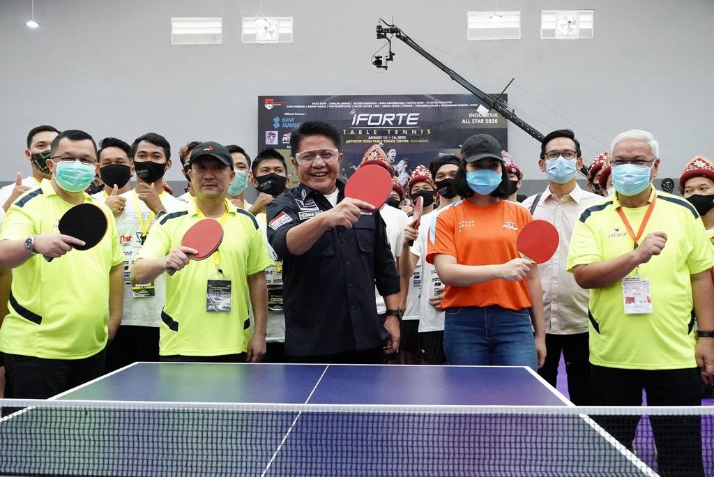 PALEMBANG, Mattanews.co – Gubernur Provinsi Sumatera Selatan H. Herman Deru (HD) membuka kejuaraan Tenis Meja (Iforte Table Tennis Indonesia All Star 2020) sekaligus meresmikan GOR Pitstop Xiom Table Tennis Center, di Pitstop Table Tennis Center (16/08/2020) Pagi.
