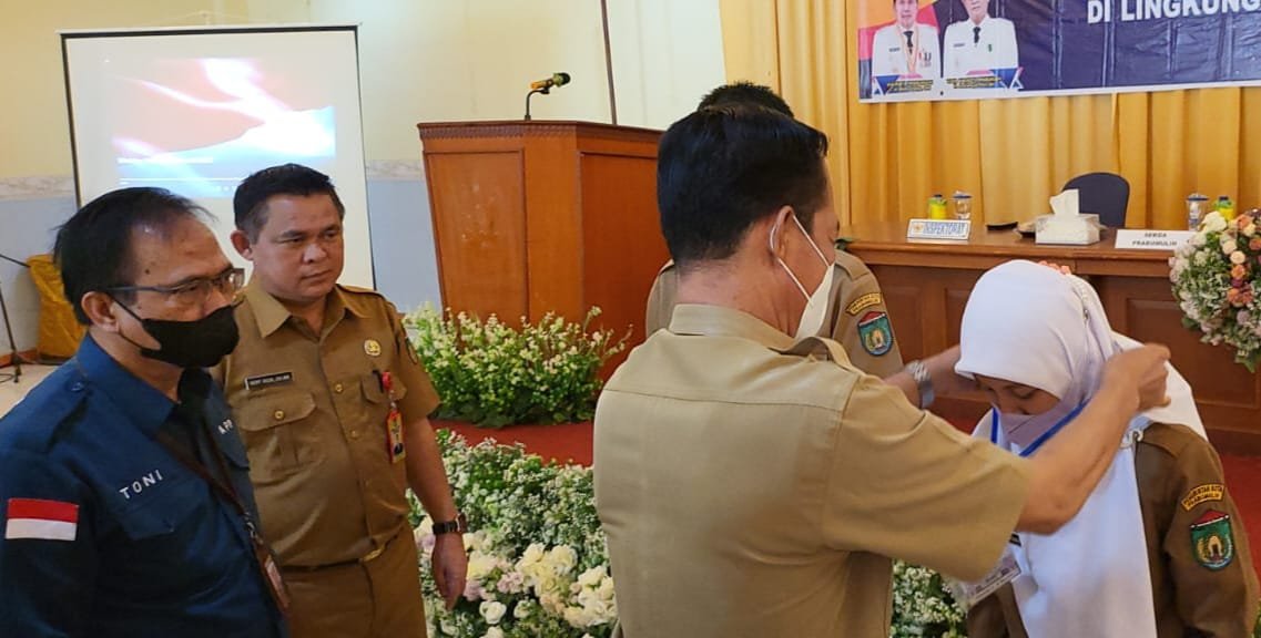 Dimulai dengan penyematan tanda peserta, acara sosialisasi yang dipusatkan di Gedung Rapat Hotel Grand Nikita Prabumulih juga dihadiri oleh Kepala Inspektorat, Kepala BKPSDM dan Kepala Bappeda serta para Camat yang diikuti oleh peserta rapat Aparatur Sipil Negara (ASN) Pemkot Prabumulih, Selasa (29/3/2022).