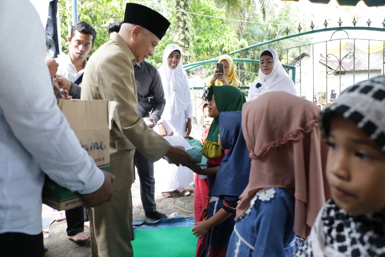 Sebelum memberikan bimbingan dan arahannya, Bupati Asahan menyerahkan santunan kepada 55 anak yatim.