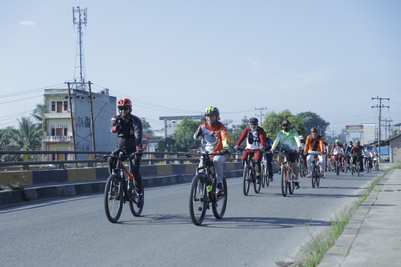 MATTANEWS.CO,ASAHAN – Bupati Asahan H. Surya, BSc bersama Unsur Forum Komunikasi Pimpinan Daerah (Forkopimda) Kabupaten Asahan menggelar Gowes Sehat, Rabu (30/6/2021).