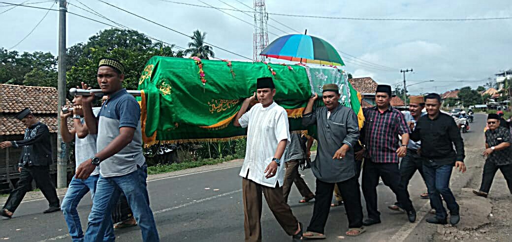 Askolani mengangkat keranda jenasah almarhumah hingga ke tempat peristirahatan terakhi, Minggu (29/12/2019).