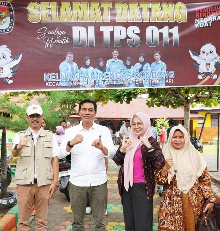 Pesta Demokrasi Berjalan Lancar: Bupati Batanghari dan Keluarga Besar Ikut Pemilu Serentak di TPS 11