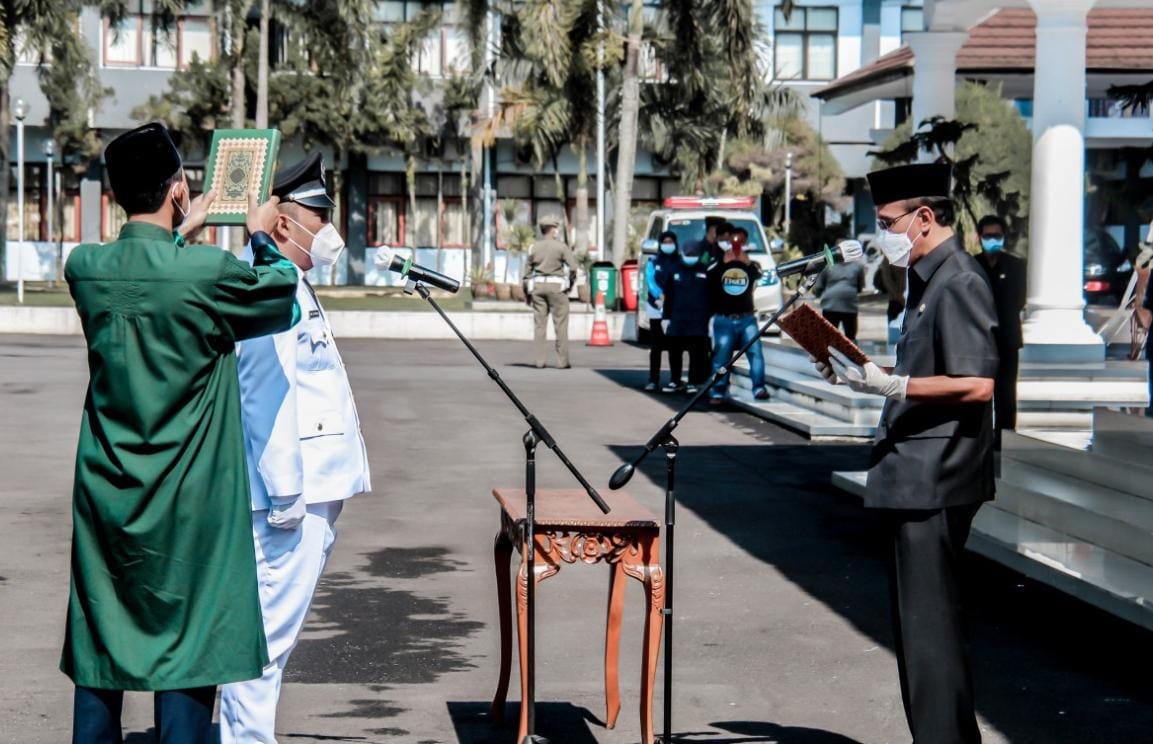 MATTANEWS.CO, CIAMIS – Bupati Ciamis Herdiat Sunarya melantik dan mengambil sumpah jabatan Kepala Desa Antar Waktu Terpilih, Desa Bantardawa, Kecamatan Purwadadi Dena Suparman, S. IP bertempat di Pendopo Bupati, Jum’at (19/03/2021).