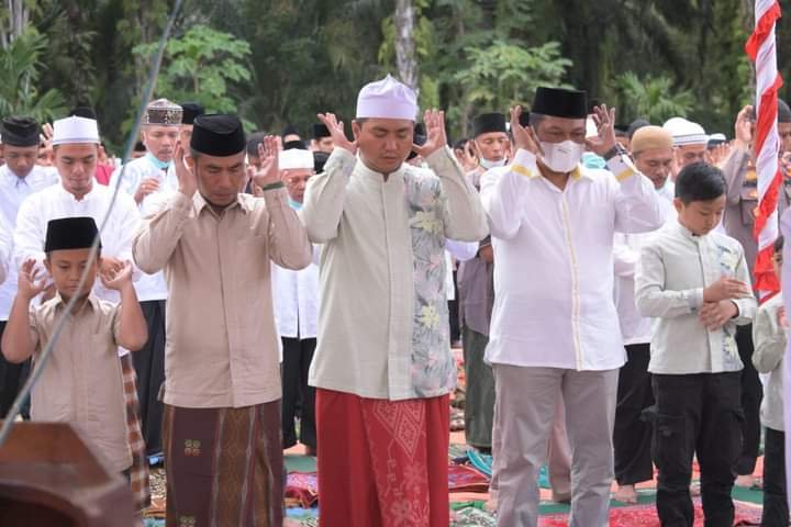 MATTANEWS.CO, LABUHANBATU UTARA – Bupati Labuhanbatu Utara (Labura) Hendriyanto Sitorus, SE, MM bersama Wakil Bupati (Wabup), H. Samsul Tanjung melaksanakan salat Ied Idul Adha 1443 Hijriah bersama warga di Alun-alun Desa Pulo Dogom, Minggu (10/07/2022).