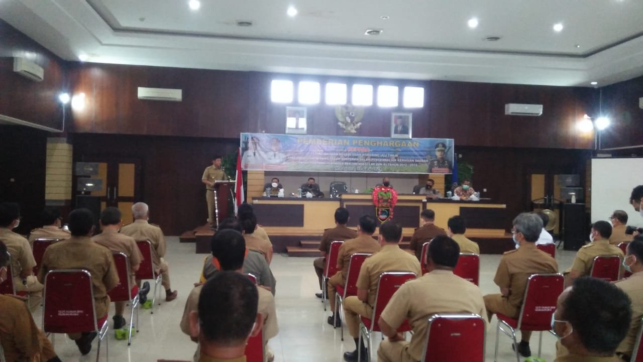 MATTANEWS.CO, OKU TIMUR – Bupati OKU Timur H. Lanosin, S.T. memberikan penghargaan kepada tim Jaksa Pengacara Negara Kejaksaan Negeri, Senin Pagi (12/04/2021) di Bina Praja I.