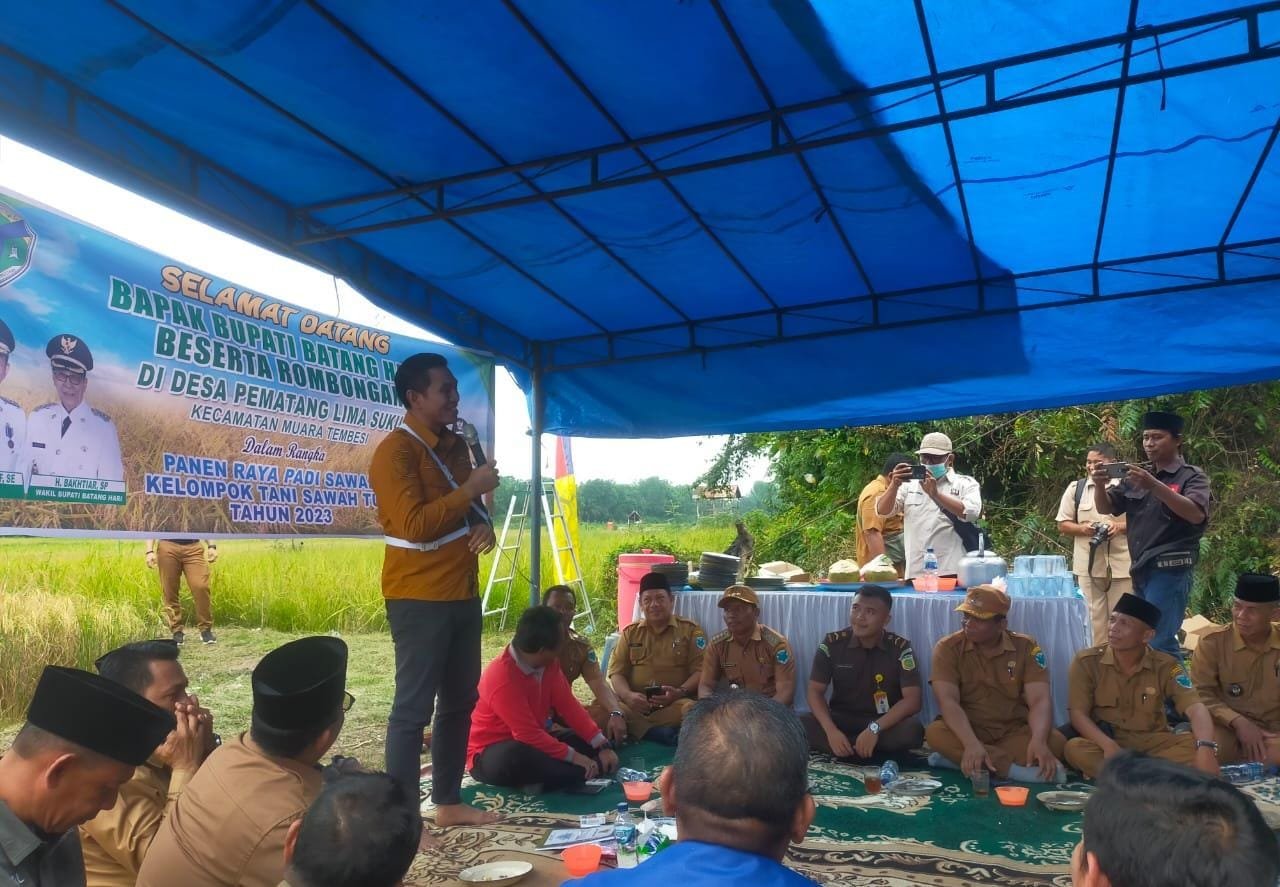 MATTANEWS.CO, BATANGHARI – Bupati Batanghari Muhammad Fadhil Arief menghadiri panen raya Padi Sawah di Desa Pematang Limo Suku, Kecamatan Muara Tembesi, Senin (18/9/2023).