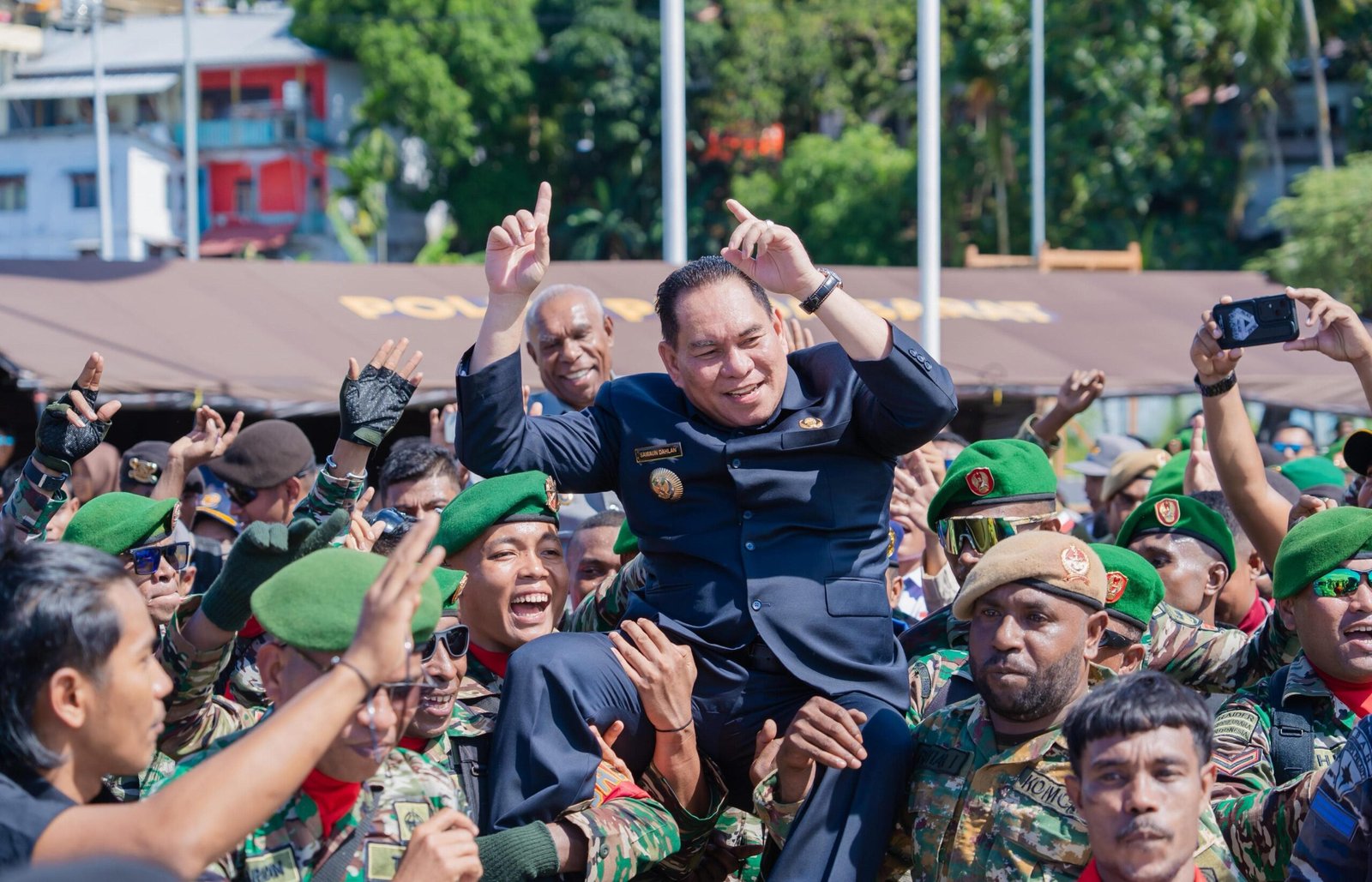 Kehangatan dalam kebersamaan tidak sampai disitu, Momentum HUT TNI ke-80 di Fakfak ini menjadi istimewa karena bertepatan dengan hari ulang tahun orang no wahid di Kabupaten Fakfak, Samaun Dahlan yang ke 57 tahun.
