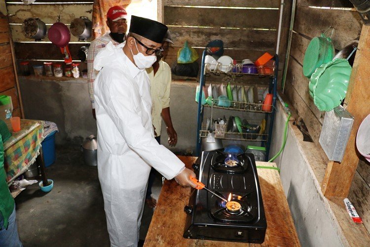 Peresmian biogas bantuan dan Bupati PALI Heri Amalindo itu ditandai dengan penyalaan kompor rumah tangan dan lampu, berbasis biogas.