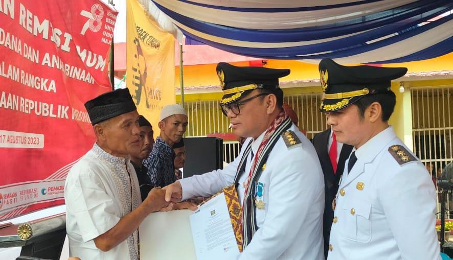 Pemberian remisi secara simbolis tersebut dilakukan di halaman kantor lembaga pemasyarakatan Kelas II B kabupaten Empat Lawang pada hari Kamis, 17 Agustus 2023.