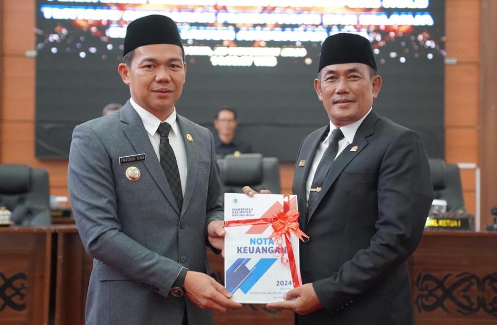 Penyampaian nona keuangan tentang rancangan peraturan daerah kabupaten Kapuas Hulu tentang APBD anggaran 2024 dilaksanakan dalam forum rapat paripurna bersama anggota DPRD Kabupaten Kapuas Hulu.
