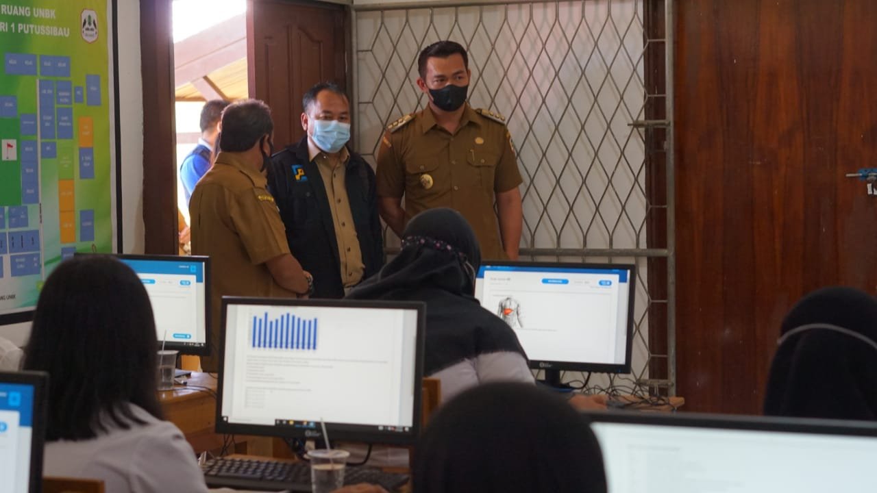 Dalam tinjauannya ke lokasi ujian, Bupati Kapuas Hulu, Fransiskus Diaan memantau proses dari awal peserta memasuki lokasi, registrasi sampai peserta berada di ruang ujian.