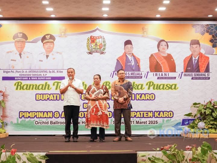 Dalam suasana penuh kebersamaan dan kekeluargaan, Bupati Karo, Brigjen Pol (Purn) Dr. dr. Antonius Ginting, Sp.OG., M.Kes, bersama Wakil Bupati Karo, Komando Tarigan, S.P, menggelar acara ramah tamah dan berbuka puasa bersama Pimpinan serta Anggota DPRD Kabupaten Karo yang berlangsung di Mikie Holiday Resort, Berastagi, Selasa (11/03/2025).