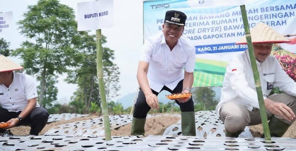 MATTANEWS.CO, KARO – Bupati Karo, Brigjen Pol (Purn) Dr.dr. Antonius Ginting, Sp.OG., M.Kes, menghadiri seremoni serah terima bantuan Instore Dryer (rumah pengering) sekaligus Gerakan Penanaman Bawang Merah yang dipusatkan di Desa Selandi, Kecamatan Payung, Kabupaten Karo, Rabu (21/01/2026).