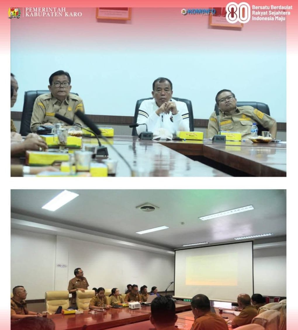 Rakor ini dipimpin langsung oleh Bupati Karo, Brigjen Pol (Purn) Dr. dr. Antonius Ginting, Sp.OG, M.Kes, didampingi Wakil Bupati Komando Tarigan, S.P, dan Sekda Karo Dr. Drs. Eddi Surianta Surbakti, M.Pd.